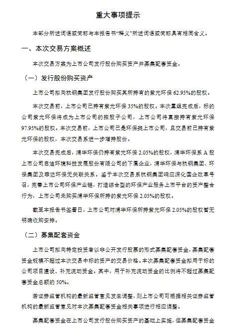 12月16日菲達(dá)環(huán)保公布發(fā)行股份購買資產(chǎn)并募集配套資金暨關(guān)聯(lián)交易報(bào)告書(草案),上市公司擬向公司控股股東杭鋼集團(tuán)發(fā)行股份購買其所持有的紫光環(huán)保62.95%的股權(quán)。